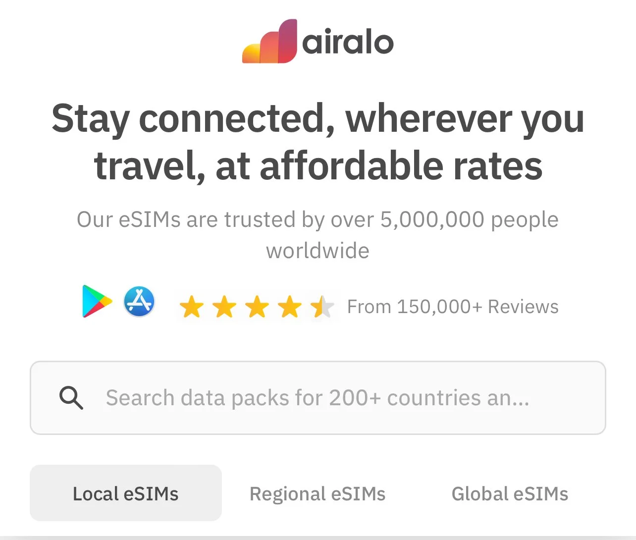 Airalo eSIMs make international connectivity a breeze. Say goodbye to the hassle of locating a local store, waiting in line, and dealing with language barriers just to get a new SIM card. With Airalo, you can browse and purchase eSIMs for over 200 various destinations right from the comfort of your home, offering unparalleled convenience and simplicity.